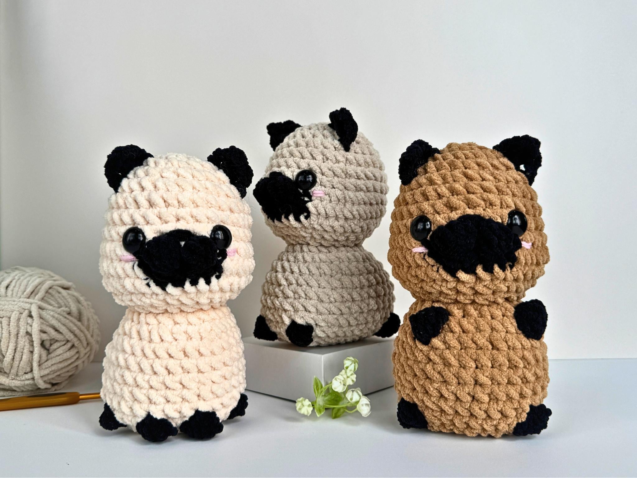 Pug Crochet Pattern Bundle 3 in 1, No Sew Dog Amigurumi PDF, Beginner Friendly