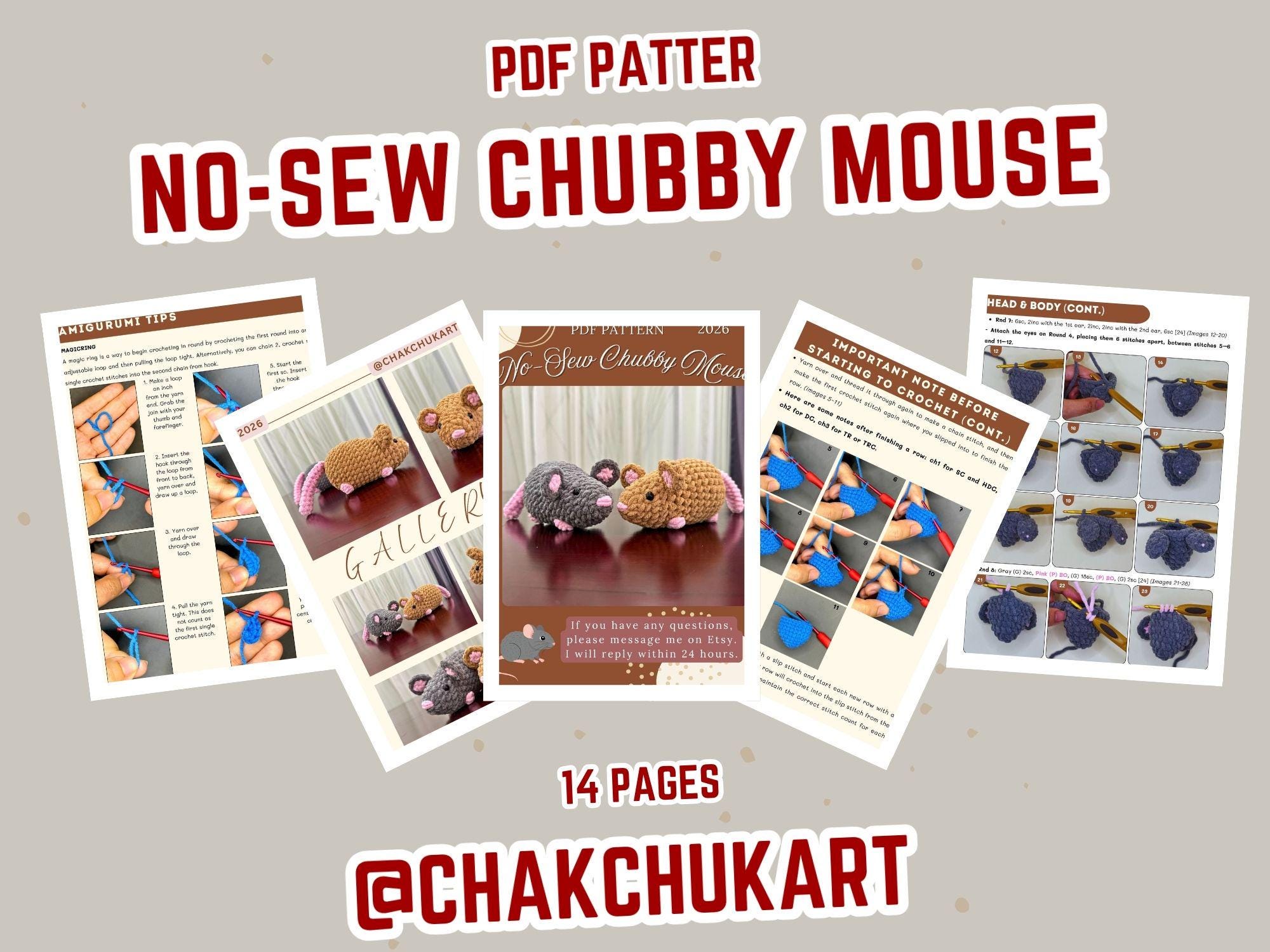 Crochet Mouse Pattern No Sew, Chunky Amigurumi Plushie PDF